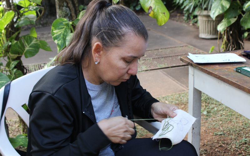 O Ateliê de Tecelagem Hermantina Drummond promoveu na última quarta e quinta-feira, 14 e 15 de julho, uma Oficina de Bordado no jardim do Museu Calmon Barreto e Memorial de Araxá.