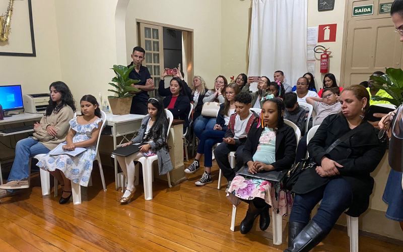 “Esse foi o primeiro contato deles com o público, para criarem intimidade com o processo de ouvir e apresentar. Buscamos aprimorar a dedicação à aprendizagem e promover uma interação com a família, que pode acompanhar o desenvolvimento dos alunos. O momento também trabalha a desinibição frente à uma plateia. Mensalmente teremos este tipo de apresentação”, conta a diretora da Escola de Música, Márcia Balieiro.