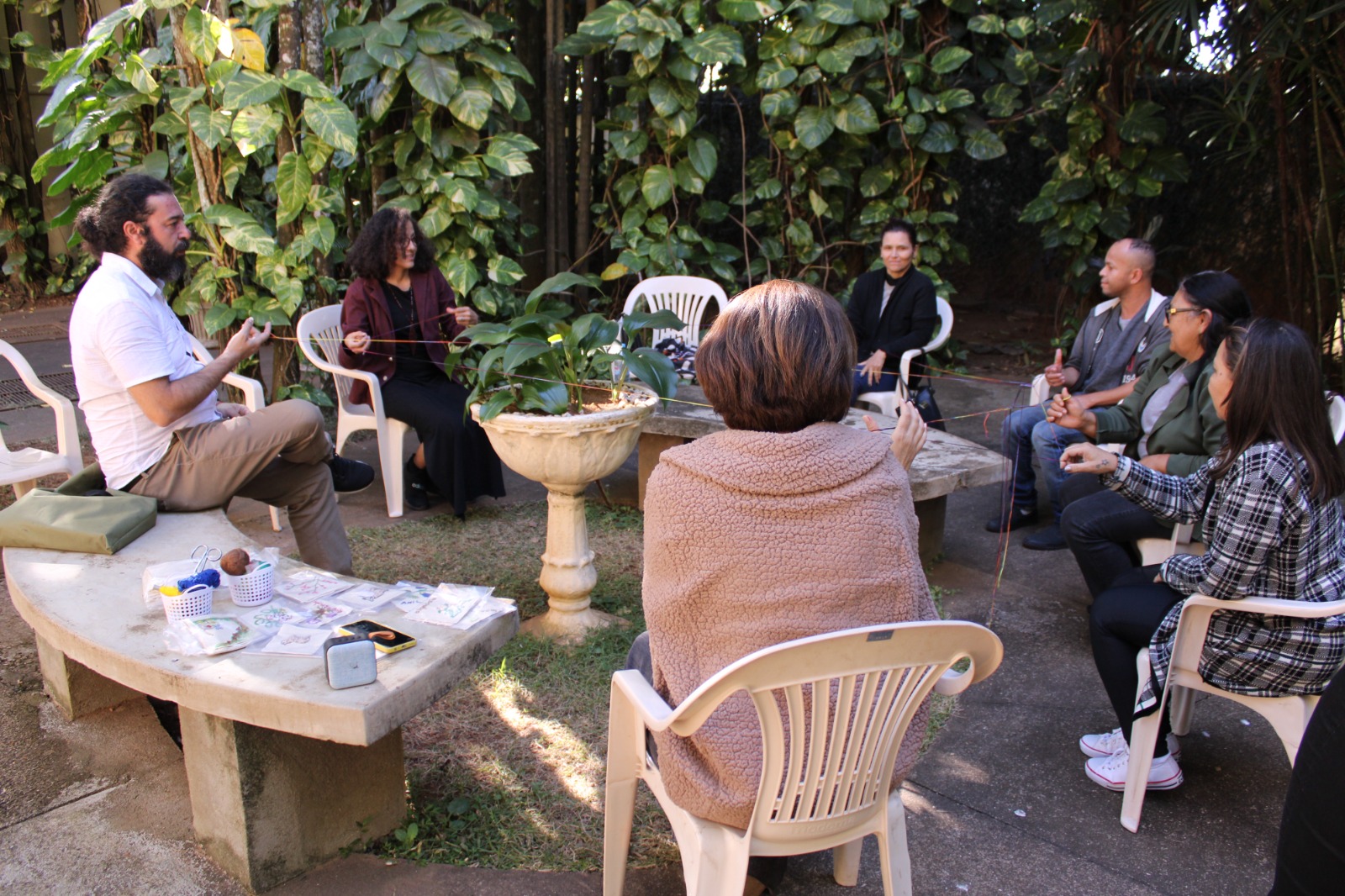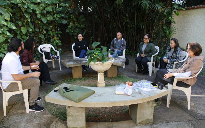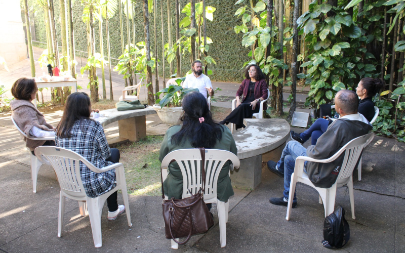 10/07/2023 - Representantes da exposição 'Mãe Terra' promovem roda de conversa com tecelãs da FCCB