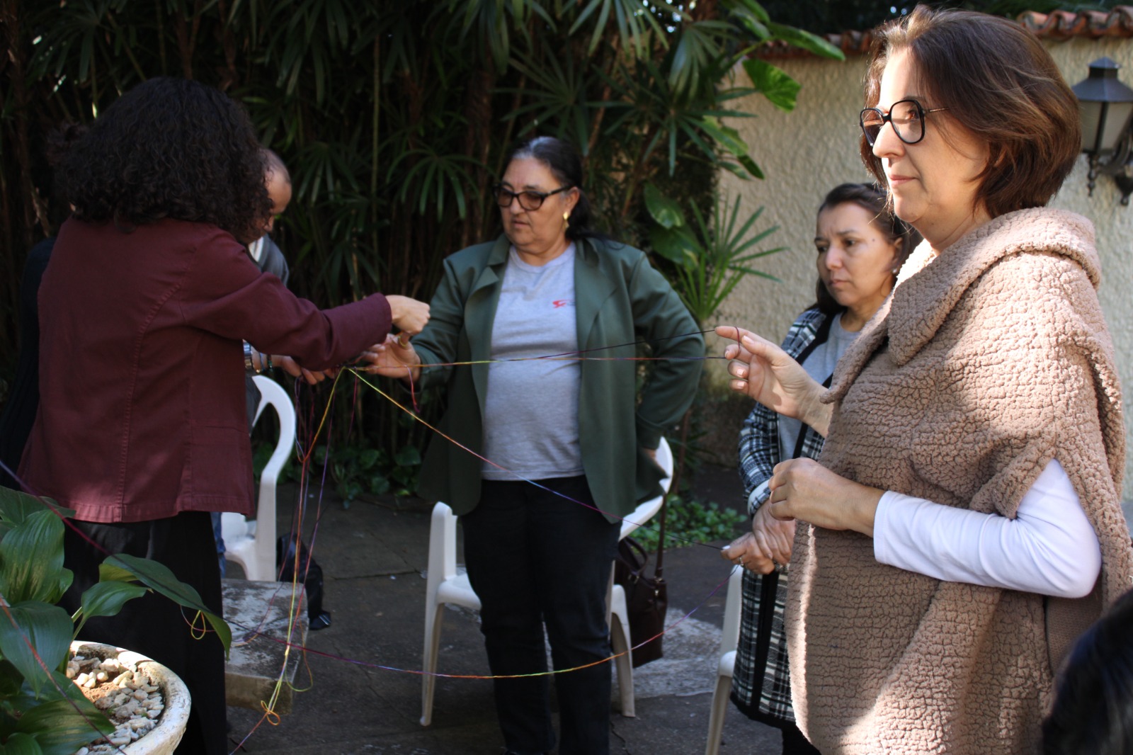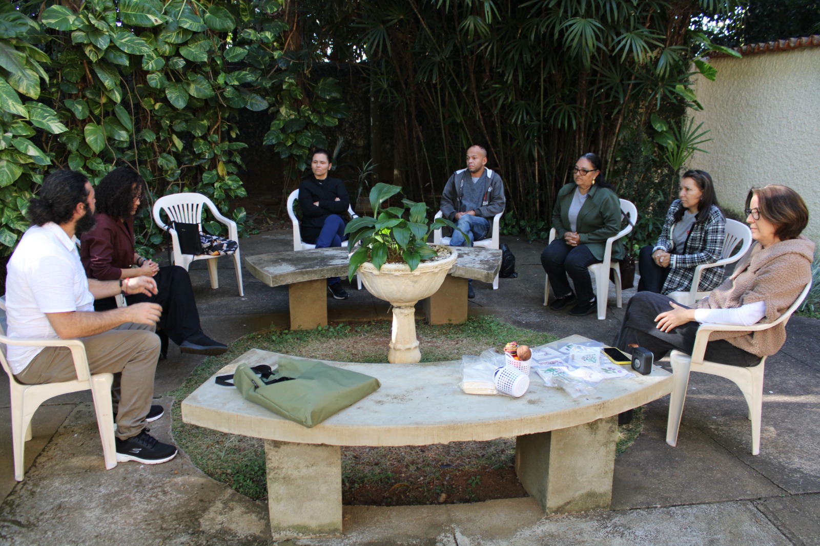 As tecelãs do Ateliê de Tecelagem Hermantina Drummond participaram na tarde da última sexta-feira (7), no jardim do Museu Calmon Barreto e Memorial de Araxá, de uma roda de conversa com os representantes da exposição ‘Cartografias Têxteis: Mãe Terra’, que será realizada no dia 26 de julho no Complexo Cultural e Científico de Peirópolis.