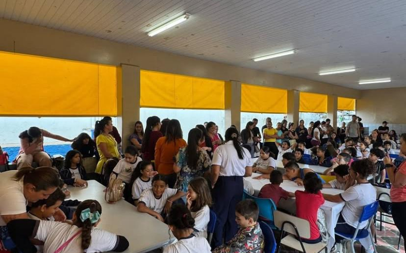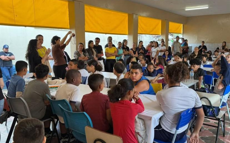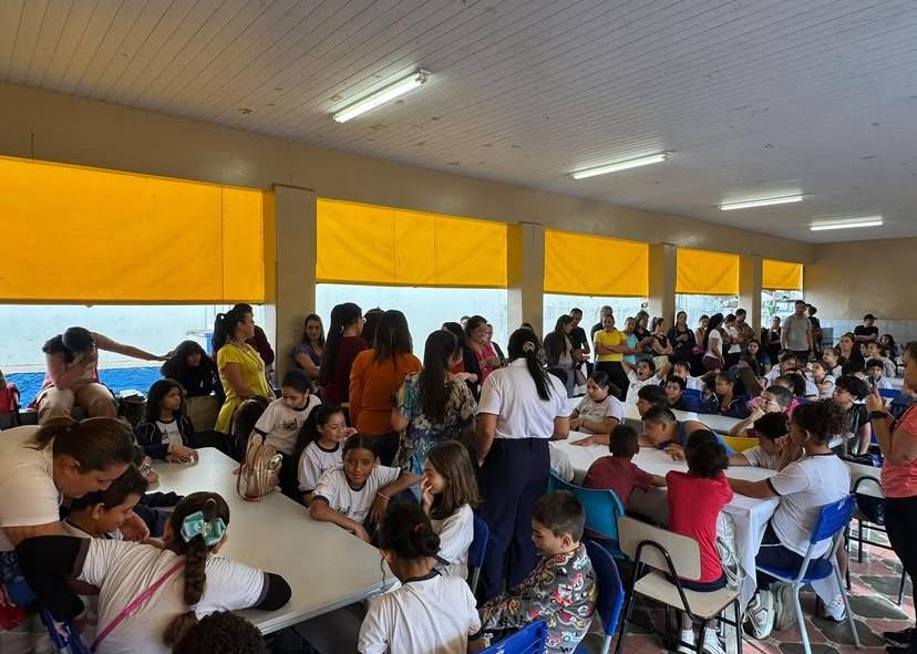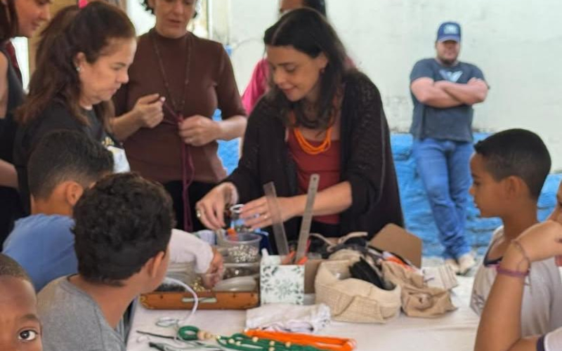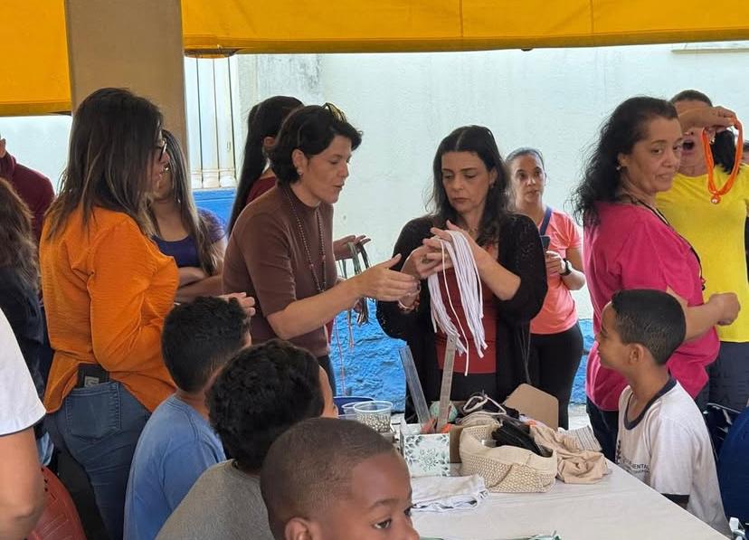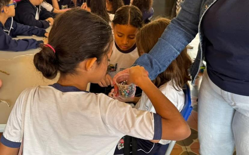 A oficina, conduzida pela Patrícia Pandovani ensinou alunos, pais e familiares a reutilizarem camisetas e blusas antigas para a criação de bijuterias, reforçando a importância da reciclagem, da criatividade e da sustentabilidade.