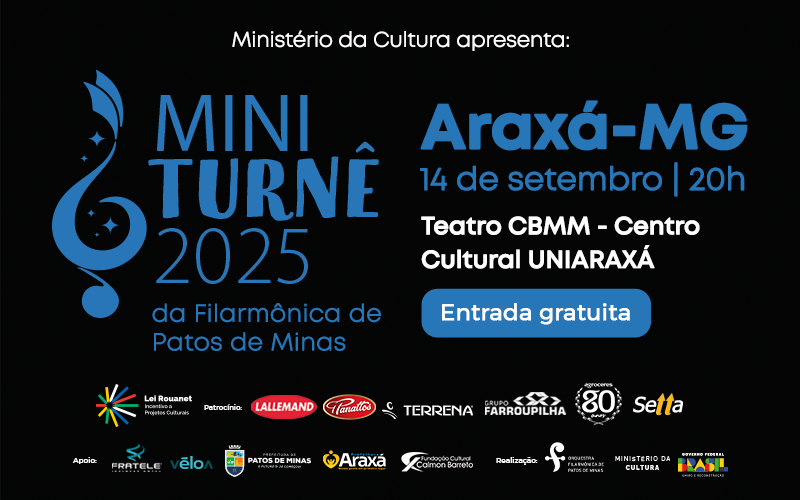O concerto é viabilizado pelo Ministério da Cultura, por meio da Lei Federal de Incentivo à Cultura (Lei Rouanet), com patrocínio das empresas Lallemand, Panattos, Agroceres, Grupo Farroupilha, Terrena e Grupo Setta. Conta ainda com o apoio das Prefeituras de Araxá e de Patos de Minas e da Fundação Cultural Calmon Barreto (FCCB).
