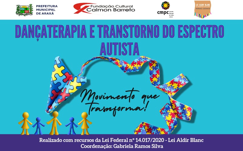 Durante os meses de fevereiro e março de 2022 será desenvolvido em Araxá o Projeto “Dançaterapia e Transtorno do Espectro Autista - Movimento que Transforma!". Executado por Gabriela Ramos Silva e realizado com recursos da Lei Federal nº 14.017/2020 - Lei Aldir Blanc, conta com a validação da Secretaria Municipal de Educação.