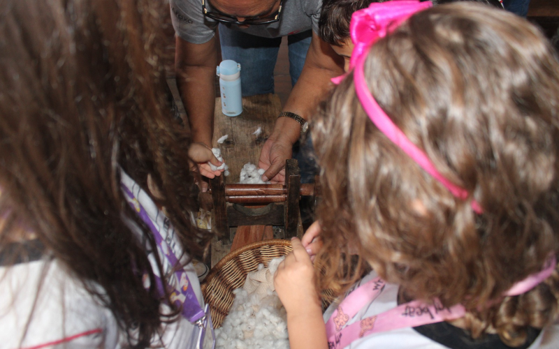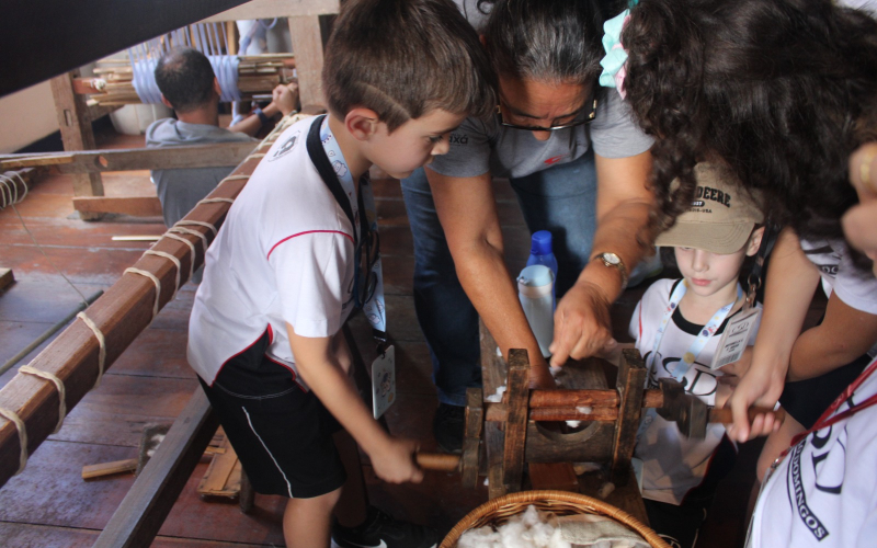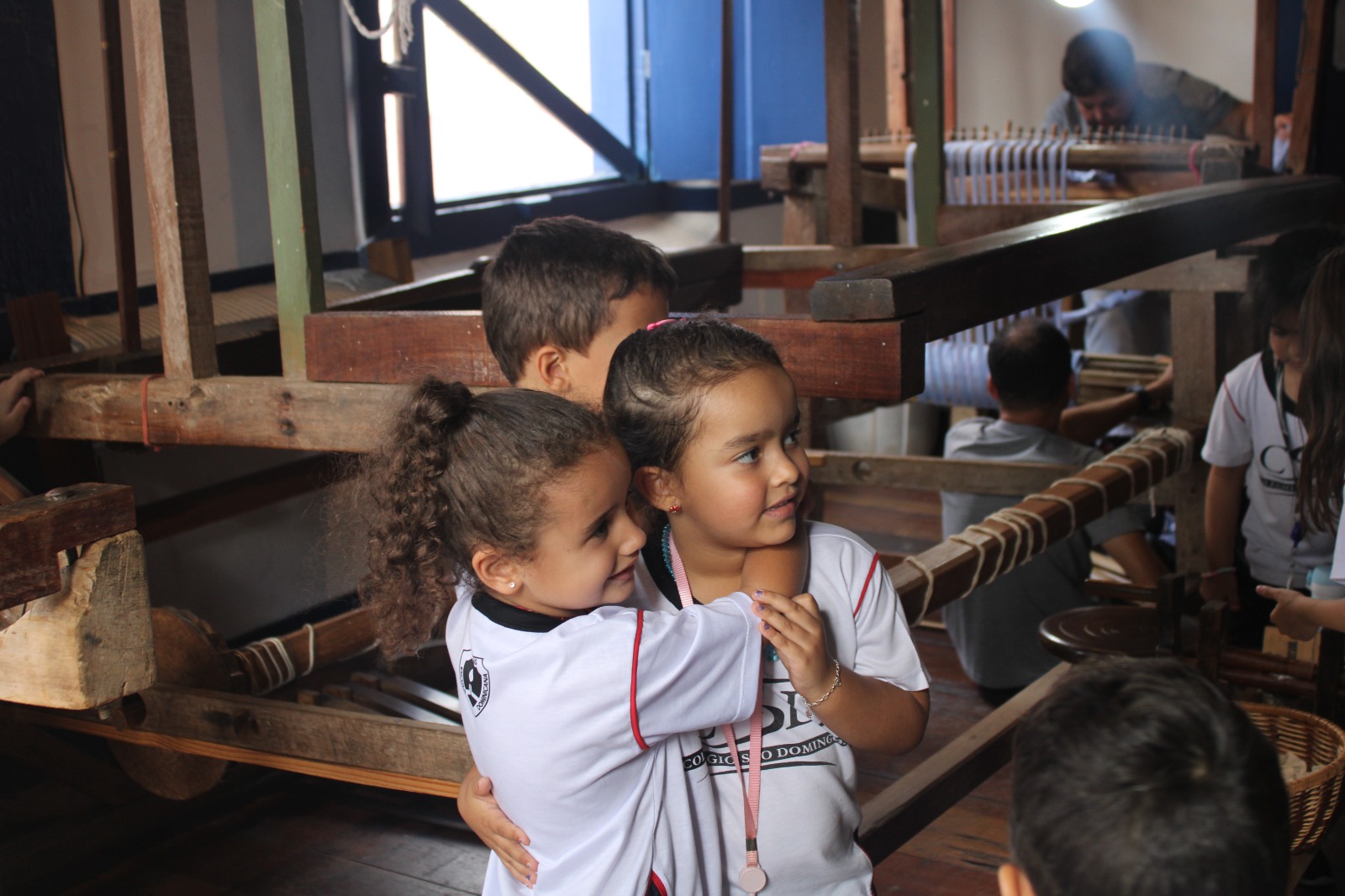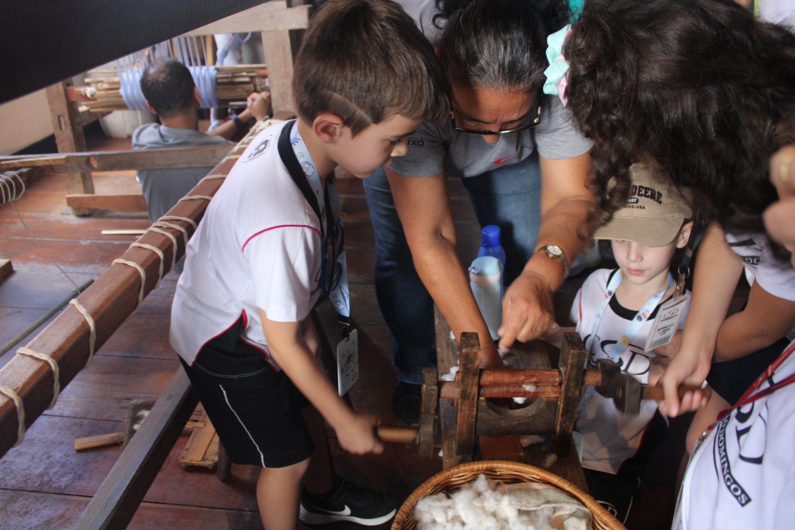 O Ateliê de Tecelagem Hermantina Drummond recebeu na última quinta-feira (27), 23 alunos do Colégio São Domingos. Durante a visita, os estudantes conheceram todo o processo de produção de peças no Tear Mineiro, desde o descaroçamento do algodão, a cardagem, até a montagem do fio e do tecido no tear.