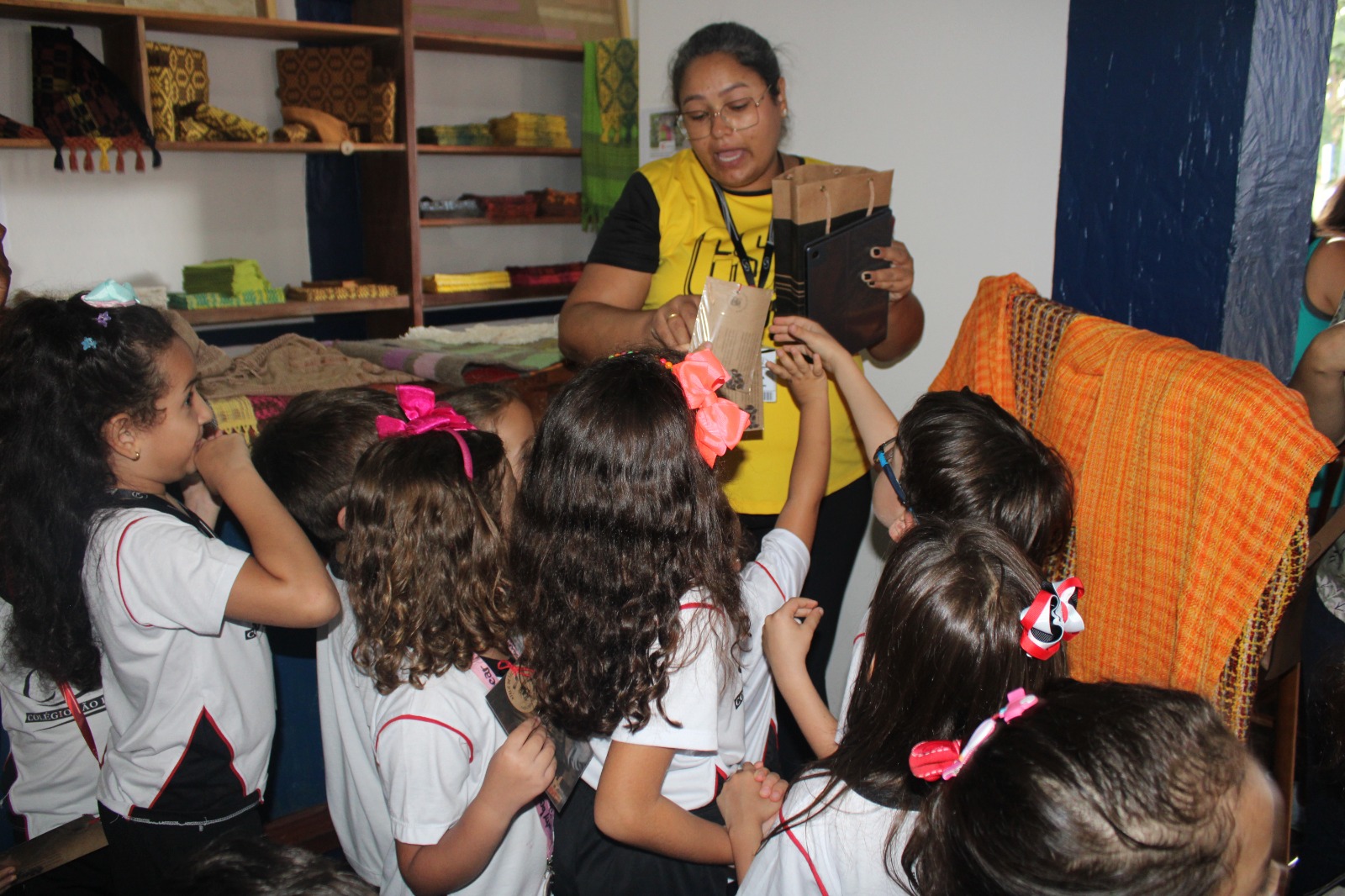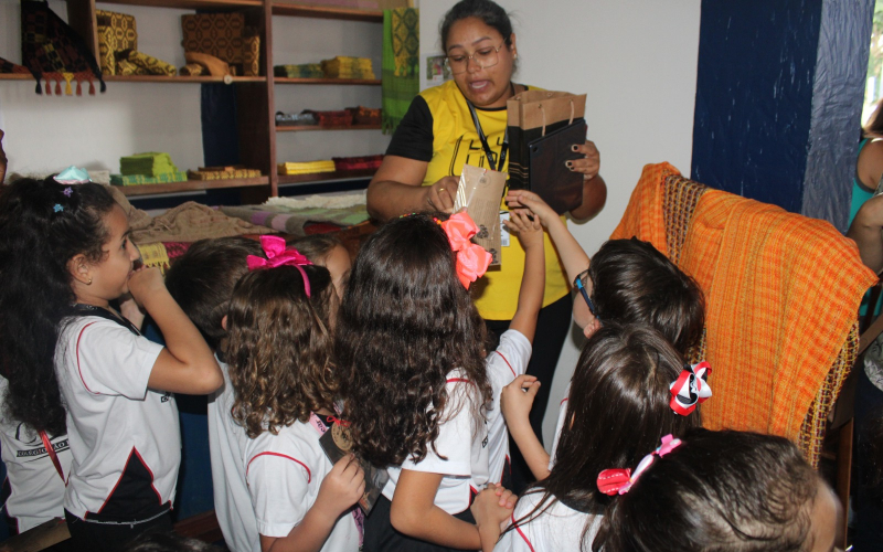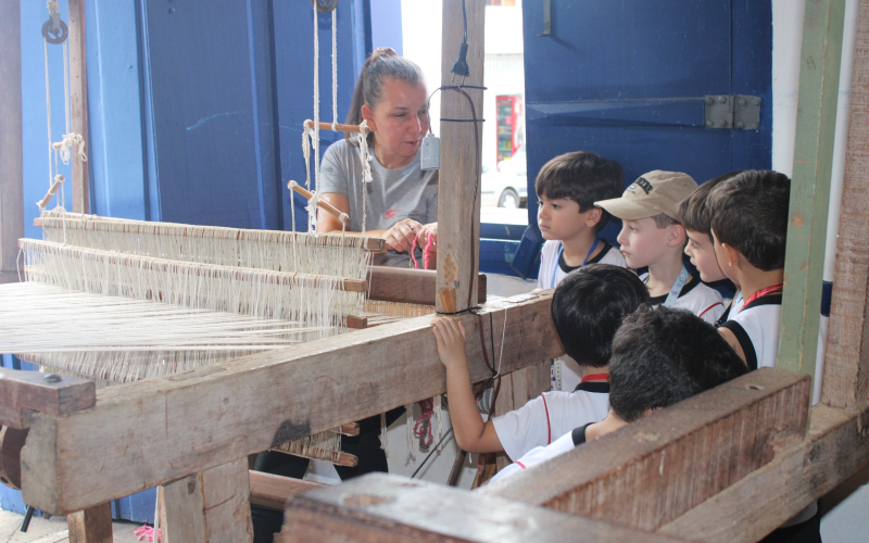 04/05/2023 - Ateliê de Tecelagem recebe a visita de 23 alunos do Colégio São Domingos