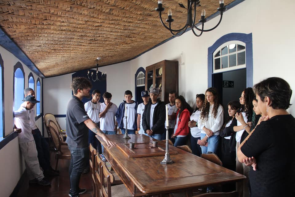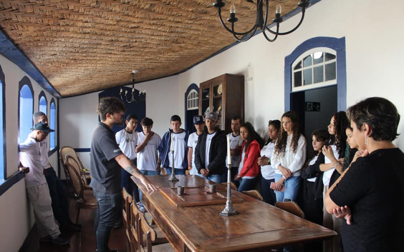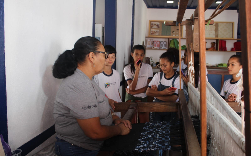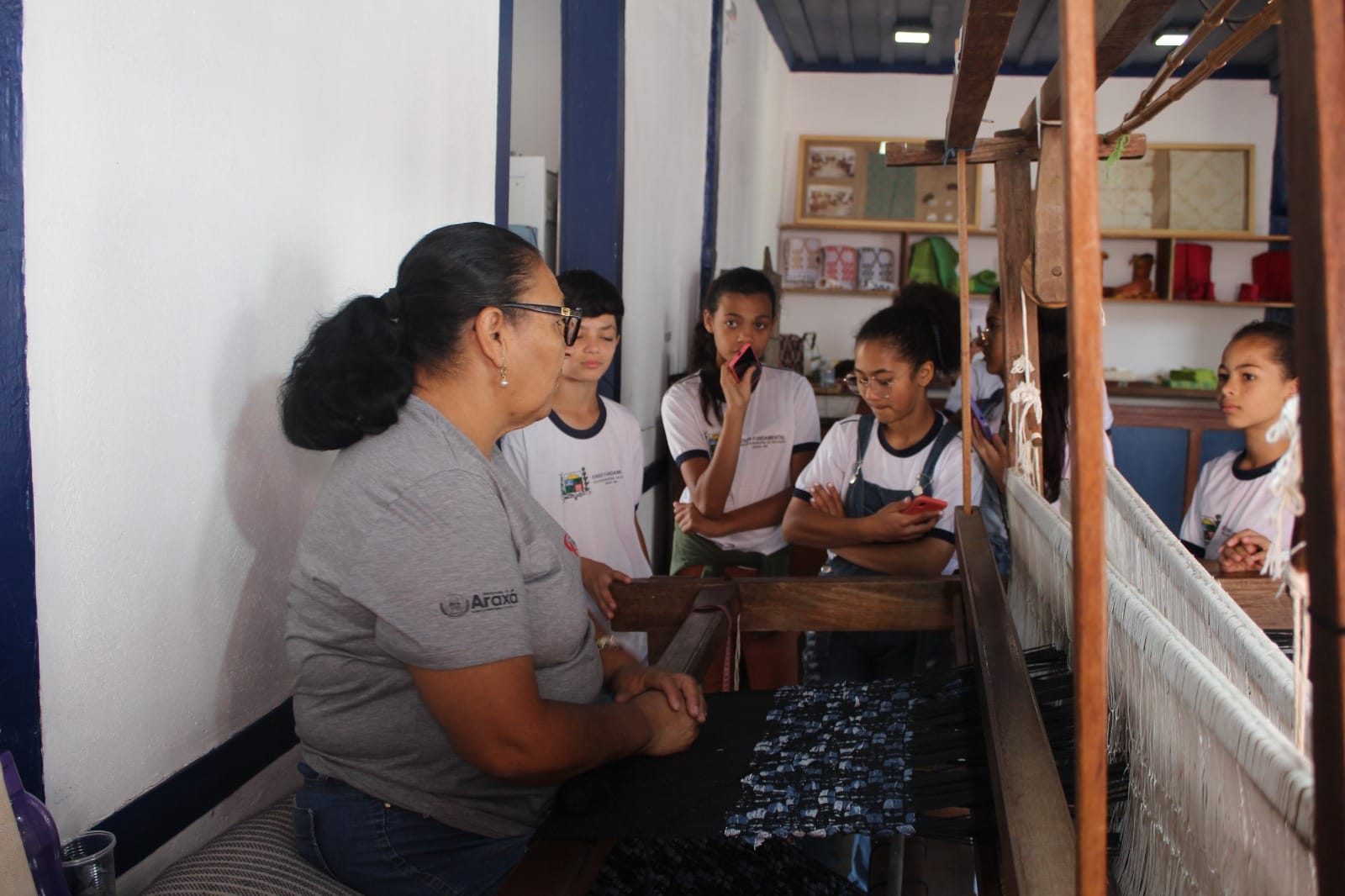 Durante a visita, além de conhecerem o espaço e a história de Dona Beja, os estudantes aprenderam sobre a importância da preservação do patrimônio cultural e acompanharam o trabalho do Ateliê de Tecelagem Hermantina Drummond.