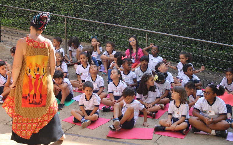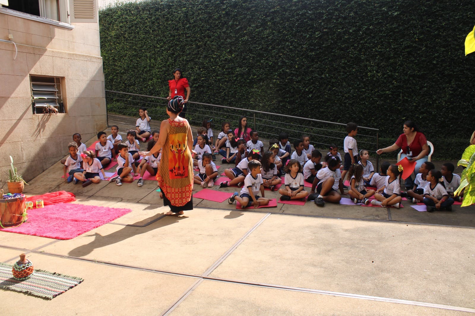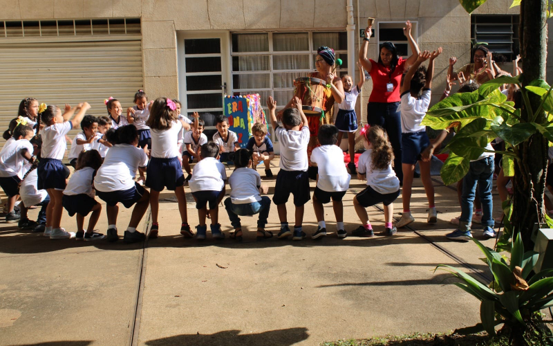 Após a visita guiada, os alunos desceram ao jardim para a contação de história com a professora Márcia Pires, onde tiveram um momento ludico e muito divertido.