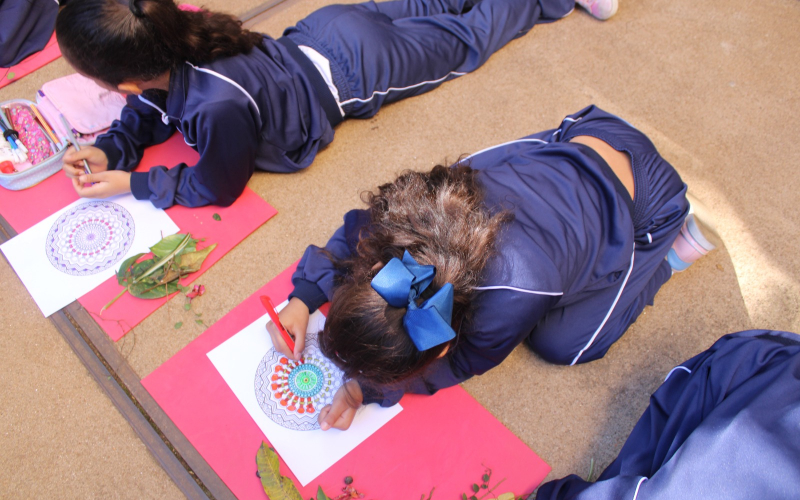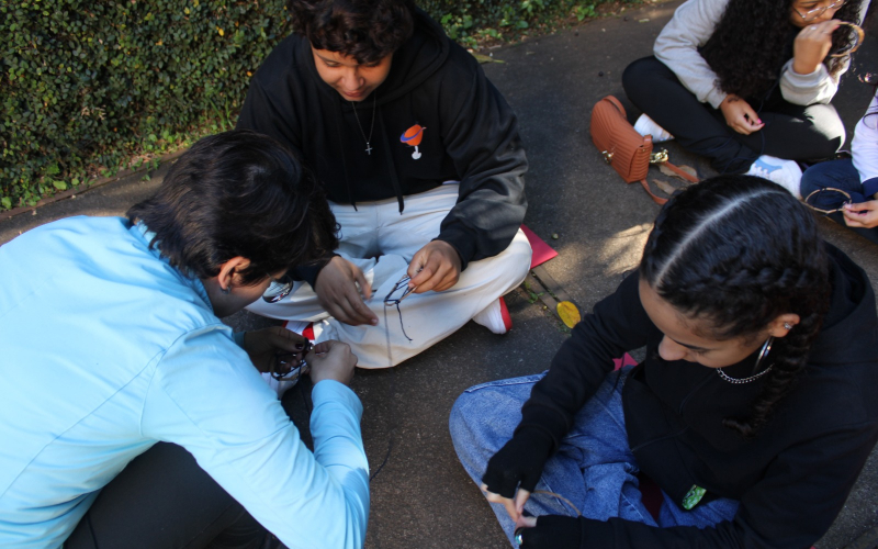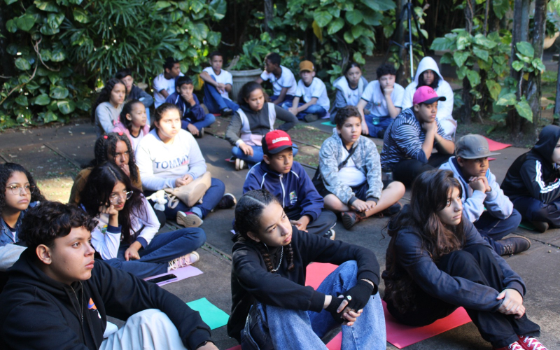 Em seguida, no jardim do Museu Calmon Barreto e Memorial de Araxá, a analista ambiental Juliana de Fátima Silva ministrou aos alunos uma palestra com o tema sustentabilidade e bem-estar. Logo depois, utilizando elementos da natureza confeccionaram mandalas e filtro dos sonhos.