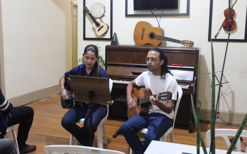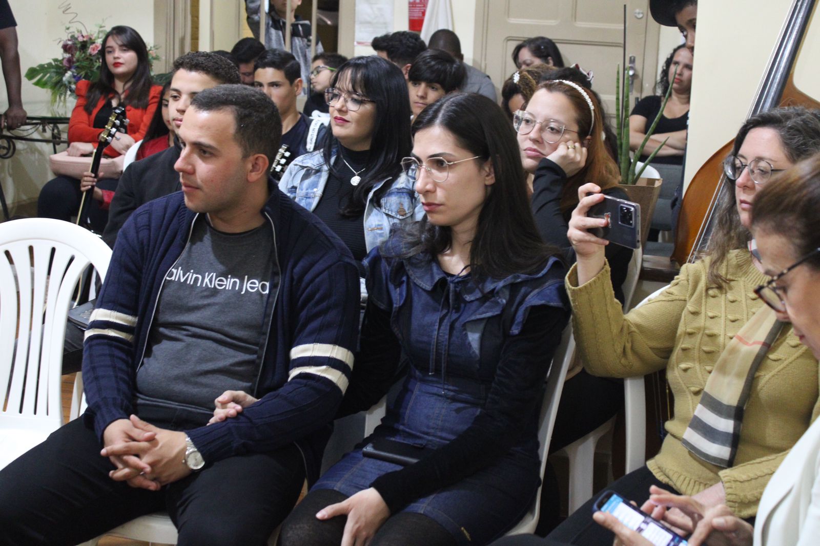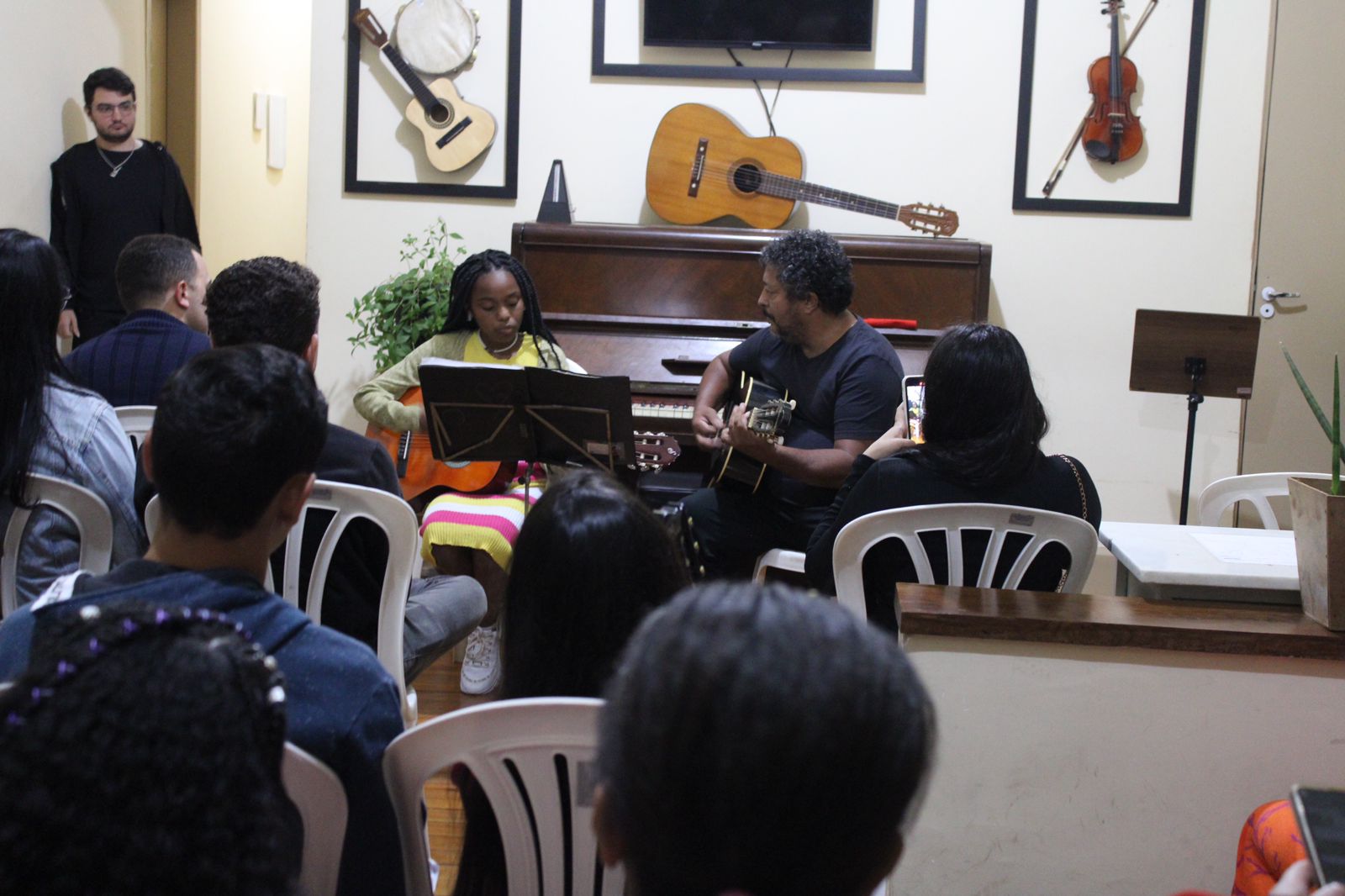 Durante o momento, foram apresentadas músicas instrumentais e cantadas de vários estilos, com a participação de alunos e professores.