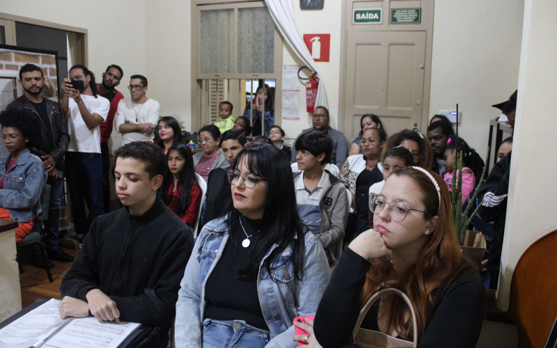 A edição de maio aconteceu nesta quinta-feira (18), na Sala Maria Teresa Romangnoli Rios, local construído para receber pequenos eventos da escola.